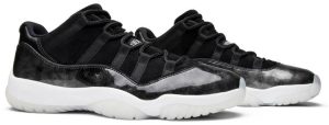 Released in May of 2017, the Air Jordan 11 Retro Low ‘Barons’ take their inspiration from Michael Jordan’s uniform colors during his short-lived minor league baseball career with the Birmingham Barons. The design features a black nubuck upper with grey patent leather overlays, a white midsole, and a white translucent outsole.