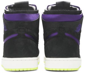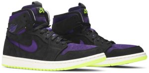 Air Jordan 1 High Zoom ‘Halloween’ celebrates the spooky holiday with an upper that blends black suede paneling with contrasting dark violet hits on the toe box, cut-out Swoosh and deconstructed collar. A neon pop of Lemon Venom stands out on the Nike Air tongue tag, matching the outer perimeter of the rubber outsole. Unique details include full-length Zoom Air cushioning and an added layer of exposed foam on the sneaker’s collar lining.