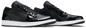 The Air Jordan 1 Low All Star 2021 celebrates the NBA’s midseason showcase with a sleek colorway of the classic silhouette. The black leather upper is enlivened with shiny tonal patent leather overlays at the toe and heel. A matching patent leather Swoosh is accented with white contrast stitching, while an embroidered Wings logo adorns the back heel. The sneaker rides on a standard rubber cupsole, featuring a foam wedge and encapsulated Nike Air for enhanced cushioning.
