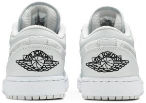 Leather sole The Air Jordan 1 Low “White Camo” is a versatile and desirable low-top version of Michael Jordan’s signature shoe with a subtle camouflage pattern. This refined look for the Jordan 1 Low features light grey tumbled leather overlays on the forefoot and eyelets. Contrasting white perforated leather appears on the toe and a smooth variant of the material covers the mid-panel. Branding, like the “White Camo” leather Swoosh located on either side, as well as the mini black Jumpman embroidery the tongue and “Wings” emblem on the heel, add classic styling to the Air Jordan 1.