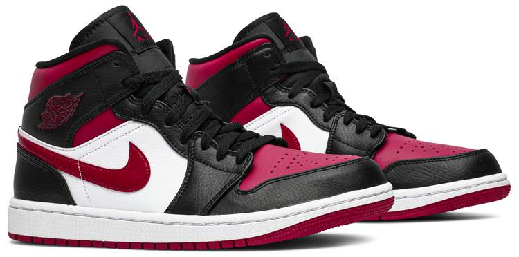 The Air Jordan 1 Mid Noble Red offers a subtle twist on the AJ1’s classic ‘Bred’ color scheme. The all-leather upper features a white quarter panel with Noble Red at the collar and toe box. Additional hits of the dark crimson hue appear on the synthetic leather Swoosh, rubber outsole and the sneaker’s branding elements, including a Jumpman tongue tag and debossed Wings logo on the lateral collar flap.
