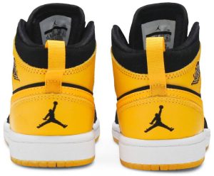 In 2007, Nike released its AJ1 Old Love, New Love Pack, which celebrated Michael Jordan’s love of motorcycles. The 2017 kids-sized Nike Air Jordan 1 Mid PS ‘New Love’ mimics the original yellow and black colorway on a leather upper. In a divergence from the 2007 release, the 2017 version features a stamped wings logo on the ankle, along with the usual tongue and heel branding.