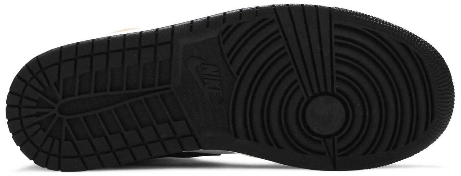 The Air Jordan 1 Mid SE ‘Metallic Gold’ treats the classic silhouette to a luxe makeover, highlighted by a white leather upper with metallic gold overlays and contrasting black hits on the Swoosh and collar. A Jumpman icon adorns the woven tongue tag, complementing a classic Wings logo stamped on the lateral collar flap. The mid-top rides on a traditional rubber cupsole, enhanced with encapsulated Nike Air cushioning in the heel.