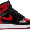 Offered in big kid sizing, the Air Jordan 1 Retro High OG GS ‘Black Metallic Gold’ gives the iconic silhouette a flashy patent leather makeover. The two-tone design is reminiscent of an Air Jordan 1 Mid from 2003 that similarly combined black patent leather construction with metallic gold accents. This pair adds a black nylon tongue with gold Nike Air branding on the woven tag. Matching gold detailing lands on the collar, Wings logo and leather Swoosh. Gold stitching stands out on the black rubber cupsole.