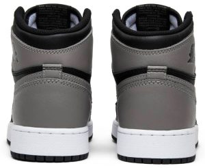 This grade school sized Nike Air Jordan 1 Retro High OG GS Shadow 2018 is a retro re-release of the OG Fall 1985 colorway. The shoe features a black and medium grey leather upper with a white midsole and black outsole. It also features OG Nike Air branding on the tongue and the Wings logo on the ankle collar.