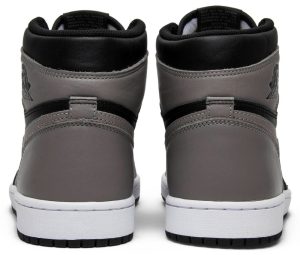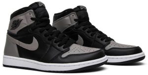 This Nike Air Jordan 1 Retro High OG Shadow 2018 is a retro re-release of an original 1985 colorway. The shoe features a black and medium grey leather upper with a white midsole and black outsole. It also features OG Nike Air branding on the tongue and the Wings logo on the ankle collar. It was last retroed in 2013, and a low-top version dropped in 2015.