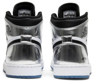 This Air Jordan 1 Retro High Pass the Torch is a tribute to San Antonio Spurs forward Kawhi Leonard and his MVP performance in the 2014 NBA Finals. It features a metallic silver and white leather upper with black accents, a white midsole, and an icy blue translucent outsole. Other details include Kawhi’s ‘Claw’ logo on the left tongue, a gold ‘2004’ branded deubré, and 16 tally marks on the heels and laces denoting the number of games the Spurs won to take home the Larry O’Brien Trophy. The sneaker dropped in Nikes “Art of a Champion” Collection in April 2018.