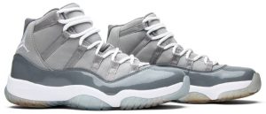 Re-released in December of 2010, the Air Jordan 11 Retro ‘Cool Grey’ 2010 features a grey nubuck upper with grey patent leather overlays. Originally released in 2001, the sneaker’s design also includes a white midsole and an ice blue translucent outsole.