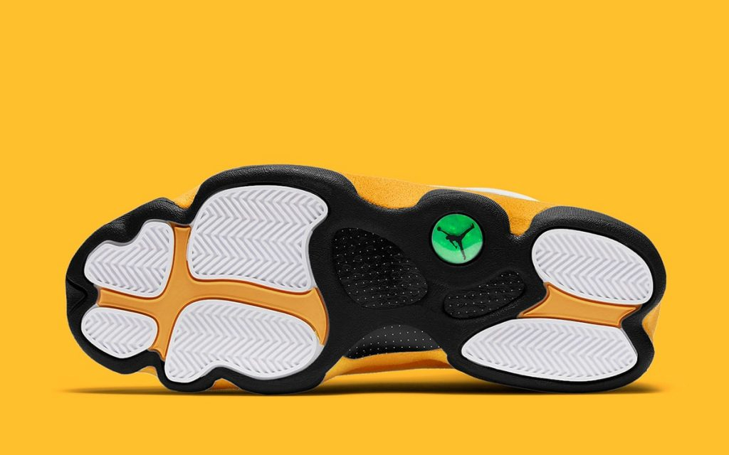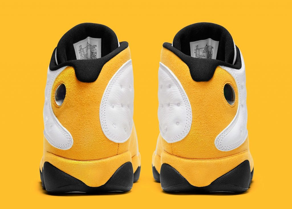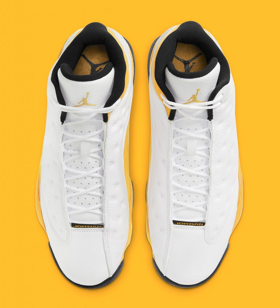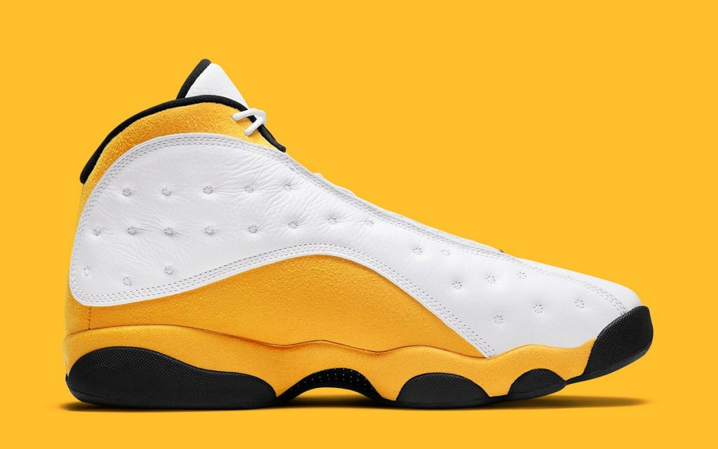 This Air Jordan 13 is expected to feature White leather on the panels, toe, and tongues with a matching liner. Other details include Yellow (Del Sol) suede overlays, Red appearing on the Jumpman tongue and outsole completed with a Black rubber sole.