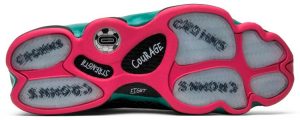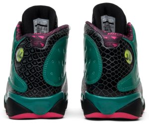 Part of the 2015 Doernbecher collection, this Air Jordan 13 Retro ‘DB’ was designed by John Charles, an 11-year-old Crohn’s Disease patient. The design combines a black snakeskin-like upper with emerald green patent leather overlays and Volt laces. Details from Johns personal life include his soccer number, the seven pills he takes per day to manage his condition and the ‘Crohn’s’ on the outsole. Pink accents highlight the collar and outsole.