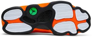 The Air Jordan 13 Retro ‘Starfish’ features a familiar color palette that recalls the ‘Shattered Backboard’ editions of the Air Jordan 1. The upper combines a white tumbled leather base with orange suede paneling and signature dimpled overlays in more white leather. Traditional branding elements include an embroidered Jumpman atop the tongue and the 13s holographic eye on the lateral ankle. A contrasting black finish is applied to the panther-paw outsole.