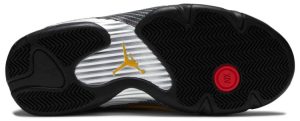 The Air Jordan 14 entered the signature line in 1998 with a distinctive look evocative of Michael Jordans prized Italian sports car. Unveiled in June 2019, this Reverse Ferrari retro works University Gold on the leather upper—a hue emblematic of the vehicles racing heritage. Bold Jumpman seals and 23 heel embroidery bestow a sense of luxury and speed. The tire-inspired midsole, dual Zoom Air units and herringbone tread are unchanged.