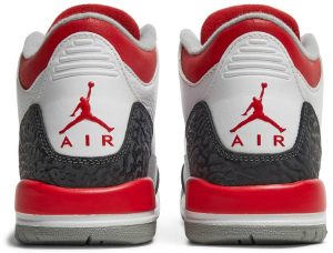 Released as one of four OG colorways in 1988, the iconic Air Jordan 3 Retro ‘Fire Red’ made its way to grade school sizing for the first time in 2013. Styled in a Bulls-inspired color scheme of white, black, silver, and Fire Red, the shoe sports the same tumbled leather and classic elephant print as the original. Jumpman logos on the tongue/heel, eyelets, and midsole all receive the Fire Red treatment.