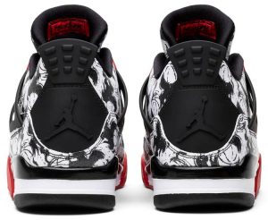 The Air Jordan 4 Retro ‘Tattoo’ takes the iconic silhouette back to its 1989 origins as a performance hoops shoe. The mid-top’s leather upper is entirely covered in a black-and-white basketball print, accented by contrasting pops of Fire Red on the molded eyelets and outsole. The Chicago Bulls-inspired color palette is finished with basic black on the structural wings, quarter-panel netting and Jumpman-embossed heel.