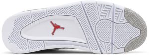 The Air Jordan 4 Retro ‘White Oreo’ features a design theme that recalls the original ‘Oreo’ AJ4 from 1999. The black tumbled leather upper of the older shoe is replaced by a clean white finish, though the speckled molded eyelets in Tech Grey remain the same. The neutral hue is repeated on the Jumpman heel logo and polyurethane midsole, featuring encapsulated Air cushioning in the forefoot and a visible unit under the heel. A second Jumpman adorns the tongue in a contrasting pop of Fire Red.