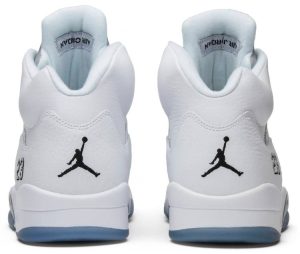 Released in April of 2015, the Air Jordan 5 Retro ‘Metallic White’ 2015 offers a remastered version of the colorway first released back in 2000. The sneaker has a white tumbled leather upper with metallic silver and black accents on an ice blue translucent outsole.