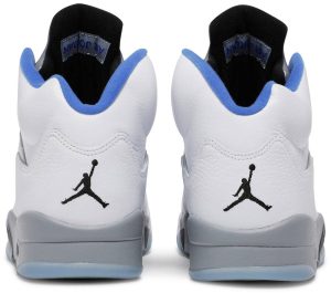 The Air Jordan 5 Retro ‘Stealth 2.0’ delivers a refreshed take on the original ‘Stealth’ Air Jordan 5 from 2006. The mid-top makes use of tumbled white leather throughout the upper, accented with powder blue Jumpman branding on the back heel and reflective silver tongue. A pale grey finish is applied to the midsole, featuring a visible Nike Air unit in the heel and a subtle paint splatter effect on the AJ5’s signature shark tooth detailing.