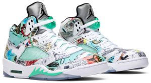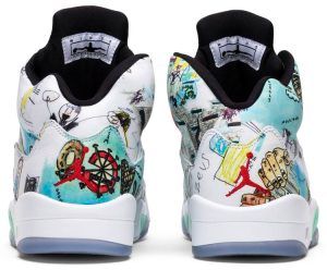 Due to the positive role educators played in Michael Jordan’s formative years, he founded Wings, a scholarship fund dedicated to giving young people equal access to a quality education. The ‘Wings’ edition of the Air Jordan 5 honors this mission by covering the leather upper in doodles and drawings by students from Little Black Pearl, a nonprofit art and design center serving the youth of Chicago’s South Side. The Jordan ‘Wings’ logo appears on the underside of the tongue, next to the statement ‘Everyone Can Fly.’