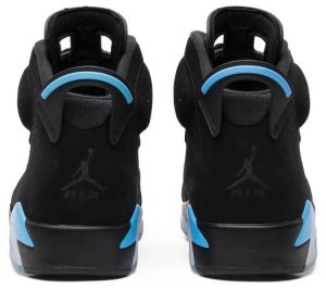 Released in December 2017, the Air Jordan 6 Retro UNC paid tribute to North Carolina’s 2017 NCAA win. The colorway comes with a black nubuck upper with University Blue on the tongue, Jumpman, lacelock, and back pull tab. The shoe also comes with University Blue accents on the midsole and translucent rubber on the outsole.