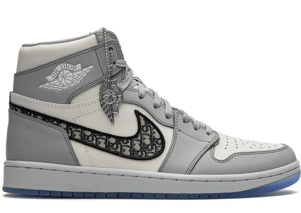 One of the most highly anticipated launches of the year. The Dior x Air Jordan 1 High sneakers are the first collaboration between the luxury powerhouse and sneaker giant. Crafted from wolf grey and sail white leather, these Air Jordan 1 High sneakers take on the iconic high-top silhouette, and update it by way of a grey Dior monogram swoosh logo. The perfect balance between classic and high-style.