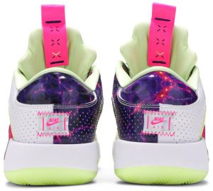 Made for the star NBA player, the Luka Doncic x Air Jordan 35 Low ‘Cosmic Deception showcaes a celestial graphic on the heel, medial eyestay and tongue, accented with a silver iridescent Jumpman on the right shoe and Luka’s personal logo on the left. The swirling violet and purple hues are offset by white leather overlays and a textile base in a pale lime green finish. The latter hue is repeated on the semi-translucent rubber outsole, while familiar fuchsia and violet tones register an additional appearance on the Eclipse Plate 2.0, featuring a hollowed-out core that reveals Zoom Air cushioning in the heel and forefoot.