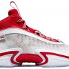 A PE colorway made for Rui Hachimura and exclusive to Asia and Latin America, the Air Jordan 36 ‘Japan’ features a red leno-weave upper with tonal synthetic overlays and contrasting hits of black on the collar and tongue. Oversized lace keepers inspired by the Air Jordan 6 feature a red Jumpman on the right shoe and Rui’s personal logo on the left. Responsive cushioning comes courtesy of a full-length Zoom Air Strobel stitched directly to the upper, which works in tandem with an additional Zoom Air unit stacked under the forefoot. In the center of the lightly speckled foam midsole, a hollowed-out section reduces weight and exposes the shoe’s midfoot shank plate. An icy translucent rubber outsole provides grippy traction underfoot.