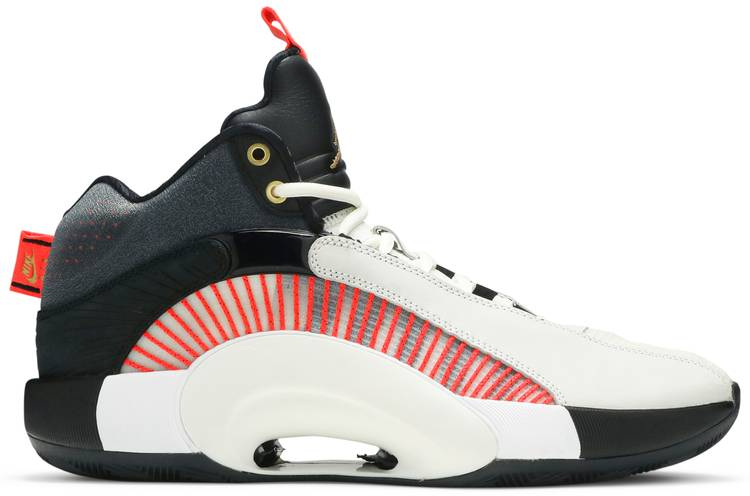 Celebrating the Manila-based retailer’s decade in business, the Titan x Air Jordan 35 PF ’10th Anniversary’ showcases a premium build that combines translucent textile with genuine leather and suede. Titan’s lightning bolt logo is debossed on the lateral heel, while a protruding heel tab in Bright Crimson is stamped with three gold stars in a nod to the Philippines. Additional crimson accents land on the pull loop atop the tongue and the Flightwire cables that radiate outward from the Eclipse Plate 2.0, its polished surface treated to a subtle off-white finish.