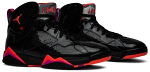 The women’s Air Jordan 7 “Black Patent Leather” takes a luxurious route to updating Michael Jordan’s seventh signature design with Nike. Sporting accenting that is reminiscent of the “Raptor” Jordan 7 colorway, a shoe with as loyal of a following as any within the popular series, the “Black Patent Leather” update uses glossy black leather overlays to contrast the black nubuck base. A vibrant embroidered Jumpman rests on the ankle collar with a colorful pattern on the tongue inspired by African tribal patterns. A purple nylon pull tab with “23” branding in bright red numbering contrasts the sleek appearance. Like the “Raptor” Air Jordan 7 that Jordan wore throughout the ’92 NBA Playoffs, the midsole uses a color scheme similar to the team uniform colors of the Toronto Raptors with a colorful tribal-like pattern on the outsole completing the look.